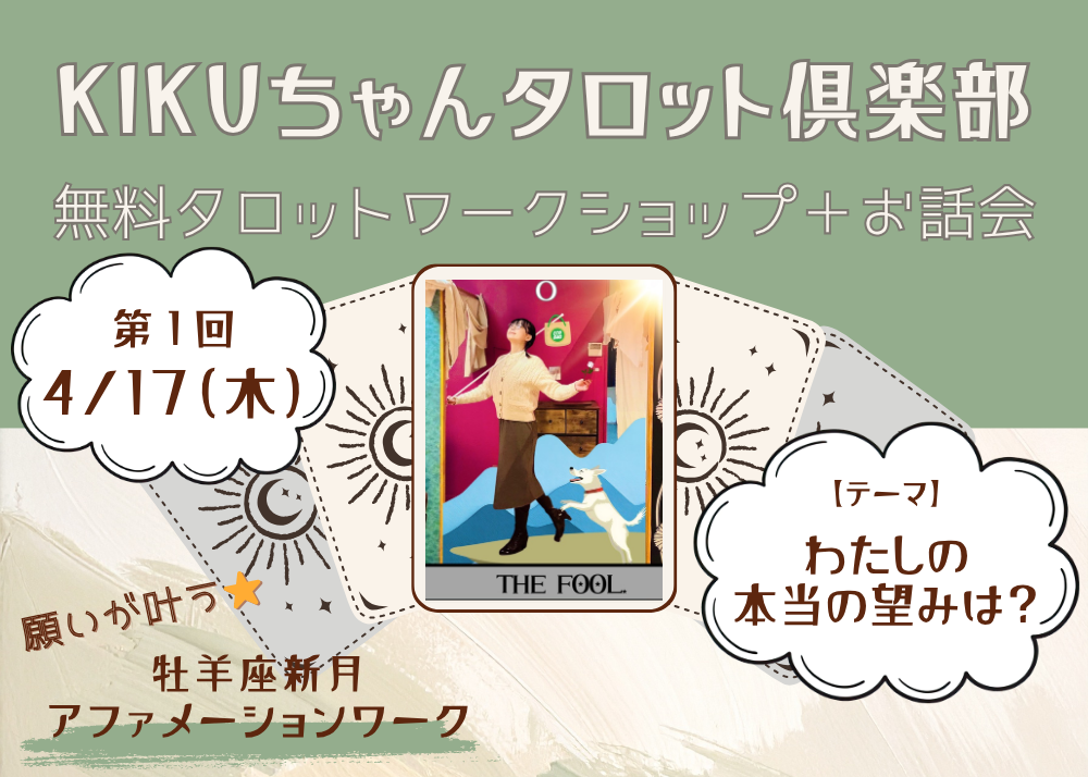 - 《KIKUちゃん》【4月17日(火)】無料タロットワークショップ【参加者募集】 - 2026年4月7日