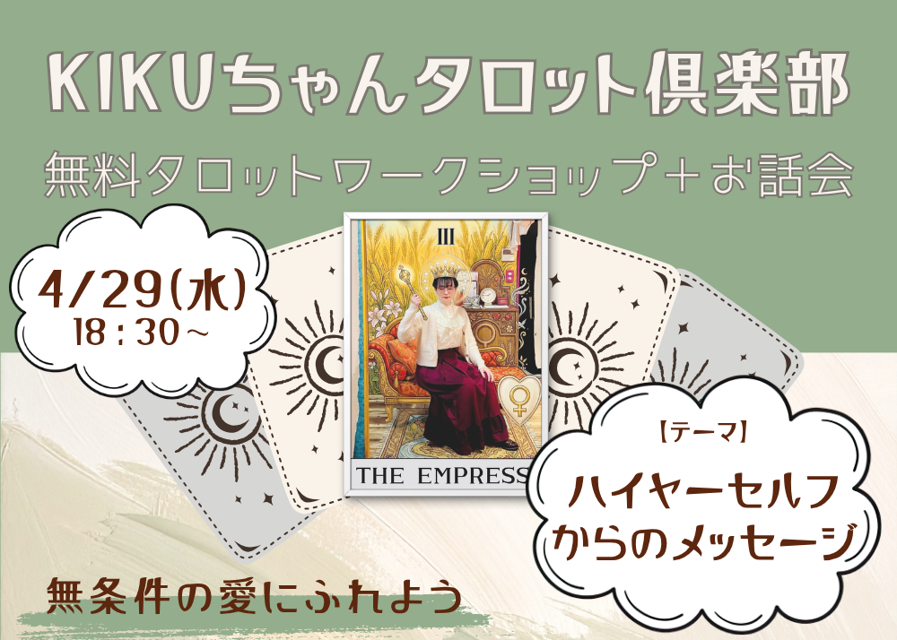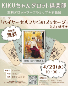 - 《KIKUちゃん》あなたもハイヤーセルフと繋がれる【4/29(水)無料タロットワークショップ】 - 2026年4月28日